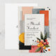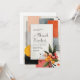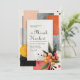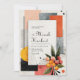 Anuncie o seu casamento com o estilo ousado e contemporâneo deste convite de casamento abstrato moderno. O design apresenta um fundo claro e esbranquiçado com uma textura sutil de papel, proporcionando uma tela artística. Formas geométricas dinâmicas em uma paleta rica e terrosa criam um impacto visual imediato. Esses blocos em camadas incluem cinza carvão profundo, laranja/terracota vibrante, pêssego/rosado suave e preto ousado, criando uma estética sofisticada de blocos de cores. Uma moldura retangular central branca serve como um contraste nítido, fornecendo amplo espaço para os detalhes do seu evento. A composição artística é aprimorada por linhas abstratas pretas sutis e respingos de tinta, dando-lhe um visual de pintura à mão e de galeria de arte. Elementos orgânicos são introduzidos por meio de folhas verdes estilizadas e aglomerados vibrantes de frutas vermelhas e laranja no canto inferior direito, suavizando as arestas geométricas. Um sol ou círculo amarelo proeminente com textura e linhas finas adiciona um toque de calor e charme retrô. Este design único é perfeito para casais que planejam um casamento urbano na cidade, uma celebração boêmia de outono ou qualquer evento que enfatize influências modernas de meados do século e composição artística marcante. Este design é perfeito para convites de casamento modernos, anúncios de festa de noivado de arte abstrata, convites para eventos de outono boho ou papelaria sofisticada