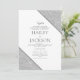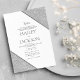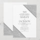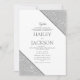 Este convite de casamento com tema geométrico apresenta uma moldura geométrica branca e brilhante prateada que envolve os detalhes do seu casamento. Dê aos seus convidados um excelente primeiro vislumbre do seu casamento, este cartão será uma adição fantástica aos seus eventos de casamento.