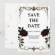 Anuncie o seu casamento com estilo com este cartão de Save the Date de casamento gótico elegante, projetado para casais que adoram romance sombrio sofisticado. Com motivos góticos refinados, paletas de cores dramáticas e elegantes, e tipografia sofisticada, este cartão captura um charme misterioso e atemporal. Totalmente personalizável com seus nomes, data do casamento e detalhes, é uma maneira perfeita de dar aos seus convidados uma visão do seu tema de casamento único. Impresso em papel de alta qualidade para um toque luxuoso, este cartão de save the date combina o charme gótico com elegância.