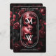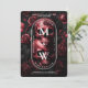 Convite Casamento Gótico Negra Rosa do Crânio Elegante