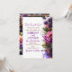 Um belo convite de casamento floral, preto e ouro. A frente é enfeitada com belos rosas roxos, engrenagens de ouro e cobre e chave, borboletas e flores.