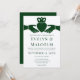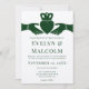 Estes convites de casamento têm uma ilustração simples feita à mão de um coração de claddagh irlandês tradicionalmente encontrado nos anéis de cladagh. O gráfico está em um caçador escuro ou conjunto verde florestal contra um fundo branco. Corresponder a carta elegante está pronto para ser personalizado com seus detalhes de casamento. O lado dos restaurantes desses convites é uma coordenação da cor verde-escura.