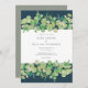 Apresentando delicadas folhas de cor aquática de eucalipto, este convite botânico para casamento pode ser personalizado com sua informação especial sobre o dia do casamento, com um fundo de sábio prateado no verso. Projetado por Thisnotme©