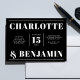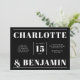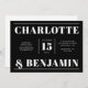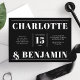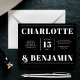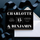 Imprima seus convidados com este convite de casamento moderno e ousado, com um layout horizontal impressionante. A design mostra uma tipografia branca limpa, colocada sobre um fundo preto elegante, oferecendo uma estética contemporânea, mas eterno. Perfeito para casais que apreciam elegância minimalista, este convite garante que os detalhes do seu casamento sejam exibidos com clareza e sofisticação. Seu estilo ousado e moderno estabelece a palco para uma celebração memorável.