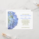 Convite de casamento floral azul claro em papel de champanhe metálico (personalize escolhendo qualquer papel). Uma bela flor de hydrangea decora a borda deste convite plano de 5 x 7 polegadas com texto de modelo. Os nomes da noiva e noiva se destacam em um roteiro azul claro com o resto das linhas personalizadas em verde escuro. Altere a cor na área "personalizá-la".