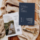 Este convite apresenta uma caligrafia elegante e uma letra de tipografia simples sans serif num fundo azul marinho com uma fotografia em forma de arco e um código QR. A simplicidade e a design limpa deste convite funciona bem com todos os temas de casamento e definitivamente uma adição excelente ao seu casamento. Basta personalizar os nomes e o texto em alguns passos fáceis e personalizar o cartão de convite com sua foto do casal feliz e substituir o Código QR pelo seu no verso do convite para dar um toque pessoal agradável ao seu convite. Note-se que a elegante caligrafia do texto, "e" na frente e no verso do cartão, assim como a trabalho de arte gráfica de "recepção para seguir" e outros elementos gráficos, não podem ser editados, apagados ou movidos. Eles estão consertados. Se precisar alterar a cor, você pode personalizar o cartão de convite. Você pode personalizar e personalizar o convite para ajustado das suas necessidades de evento de casamento e clicar em personalizar o convite. Você pode personalizar facilmente este convite com seu próprio texto e compartilhá-lo com seus convidados digitalmente — seja através de texto, email ou mídia social. Se preferir, você também tem a opção de enviar uma versão impressa para seus convidados. Ou, você pode fazer ambos — enviar uma versão digital e acompanhar com uma cópia impressa para um toque pessoal!