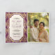 Encontrem seus convidados com isso tudo em um convite de casamento indiano apresentando uma imagem de vintage em um lindo padrão de local de ouro intrincado com o QR Code para RSVP on-line ou adicione seu URL de local para ajudar seus convidados a localizar seu local de casamento mais rapidamente. Basta adicionar os detalhes do seu evento neste modelo fácil de usar e enfeitar este cartão com a sua foto favorita para torná-lo um convite único.