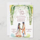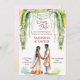 Casamento indiano salve a data em que o casal indiano está de mãos dadas sob jasmim blooms, personagens de desenho animados românticos salvam o cartão modelo de data instantaneamente.