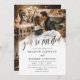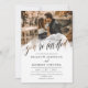 O convite para casamento de fotos informais com você é convidado, escrito em uma bela caligrafia através de uma abertura transparente de aquarela decorando sua foto. Adicione outra foto à parte traseira do convite de casamento.