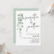 Convite Informal ao Casamento de Eucalyptus Moderno. Um estilo botânico minimalista com um galho elegante de folhas de cor d'água eucalipto correndo pelo lado esquerdo e a tipografia moderna na moda.