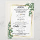 Personalize a sua festa! Totalmente personalizável com texto (data, nome, hora, local e texto árabe) elegante cartão de convite para casamento muçulmano de quadro de ouro floral eucalipto com tradução árabe. Se você quiser apenas o texto de tradução árabe e não a sura do Corão, exclua os dois primeiros textos árabes com o (edite usando a ferramenta design). O árabe inglês moderno ouro islâmico e creme cor elegante cartão de casamento muçulmano de Feliz Sempre.
