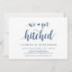 Este convite de casamento com tema Rústico (Fomos pegos), com cor de letra personalizada Azul Naval, é perfeito para o anúncio da sua celebração de casamento íntimo. Adicione seus detalhes na fonte preta correspondente.