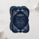 Convide seus convidados com este elegante convite de casamento, com um belo quadro de borboletas florais e o 'Bismillah' na caligrafia árabe, em um fundo azul escuro. Basta adicionar os detalhes do seu evento neste modelo fácil de usar para torná-lo um convite de tipo único. Sacudir a placa para revelar um padrão elegante de gemstone na parte traseira da placa.