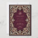 Este luxuoso convite de casamento islâmico é uma obra-prima de elegância e opulência, perfeita para anunciar o seu dia mais especial. Colocada sobre um fundo de uma burlagem de ameixa profunda, a intrincada e antiga rolagem de ouro é embelezada com sotaques soldados, acrescentando um efeito tridimensional ao design do ornamentado. A frente do convite está centrada no Bismillah árabe em uma rica matiz dourada, colocada em meio a um arranjo floral em forma de coração, simbolizando a sagrada união do amor. A parte de trás do cartão ecoa esse tema majestoso com um monograma circular cercado por uma coroa de ouro, joias e pérolas. Este convite não é apenas um convite a um casamento, mas um anúncio de uma celebração real.
