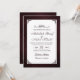 Luxuoso Burgundy & White Código QR Convites de Casamento Islâmico. Convide seus hóspedes com sofisticação moderna usando nosso "Convite para Casamento Islâmico do Código QR de Luxúria e Branca". Um pano de fundo rico é sobreposto com uma forma branca e nítida com designs de arte úmidas. O sagrado "Bismillah" agarra o topo, e a tipografia elegante burgundy apresenta seus detalhes. Um código de QR conveniente para RSVP é incluído no verso. Este modelo facilmente personalizável oferece uma luxuosa combo branco e burguês com um aspecto nítido, misturando elegância com um toque islâmico autêntico