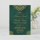 Real Emerald Green, Dourado Convite Islâmico de Casamento do Ornamentado. Este convite, uma obra-prima da arte, desenrola-se contra um pano de fundo do verde-esmeralda real. Os embelezamentos de ornamentado de ouro adoram o convite, acrescentando um toque de opulência. O convite apresenta uma elegante caligrafia de ouro, começando com a invocação sagrada "Bismillah", seguida dos intrincados detalhes da celebração do casamento. O reverso ecoa o mesmo tema, mostrando um monograma cativante dos nomes dos casais. Este convite combina perfeitamente as tradições islâmicas com um toque de talento internacional, fazer-o de uma manutenção verdadeiramente única e inesquecível para este casamento trinacional.