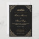 Convite para casamento muçulmano da Nikah. Fundo preto sólido com letra dourada com script elegante na frente da placa. Há um design de rolagem barroca de luxo no canto da armação. A cor deste cartão de convite pode ser personalizada e você pode alterar o nome, a data e o endereço gravados. Na segunda placa, você pode adicionar texto se quiser. SuaLineForDesign.