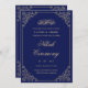 Convite para o casamento islâmico Nikkah. Design de ouro da safra real sobre um cartão azul marinho. Você pode personalizar os nomes, a data e o endereço do evento. Você pode adicionar texto na segunda placa. Entre em contato com o designer para solicitar quaisquer produtos nesta coleção.