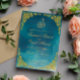 Convite Casamento Islâmico Muçulmano Turquesa Borda Dourad