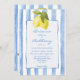 Listras azuis-de-mão limões licores italianos funk-praia cartoes de convite para casamento modelo para descarregamento instantâneo, vintage retro desfeito convites de casamento, listras azuis e limões, convites de casamento italianos, convites de casamento de limão, convite de casamento especial