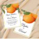 Citros de laranja e folhas de convite para casamento a laranja é a base para este convite para casamento moderno e elegante. Suas informações são facilmente trocadas por isso a convite. O convite está sozinho e faz parte de uma suíte de casamento das Designs Finas de Chessie.
