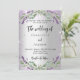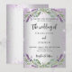 Um convite de casamento moderno e elegante. Um fundo com aparência de prata falsa com brilho violeta falso, faíscas, flores de lavanda e folhagem de eucalipto. Personalize e adicione seus nomes e os detalhes.