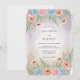 Esta obra de arte apresenta uma estética de aquarela suave e romântica, apresentando papoulas cor de pêssego, rosas cor-de-rosa e hortênsias azuis. Os elementos florais são complementados por folhagens verde-sage e colocados contra um fundo sonhador de lavagens de lavanda e bege. Este design etéreo captura um espírito vibrante e artístico perfeito para um tema floral de primavera sazonal.
