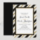 Convites de Casamento Listras Horizontais Chic Preto Branco & Dourado.