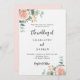 Um fundo branco chic. Decorado com flores rosa dourado e flores rosa, rosas e folhas de eucalipto coloridas em verde-água, raminhos, folhagens e raminhos dourados falsos. Personalize e adicione seus nomes e detalhes.