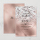 Convites de casamento elegantes mármore branco e dourado rosa com caligrafia preta clássica.