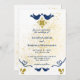 Este convite para o casamento mexicano pode ser personalizado com sua própria redação clicando no botão "personalizar". Você também pode reorganizar e formatar o texto de acordo com o seu gosto. Todo texto é editável, portanto, sinta-se à vontade para usar seu próprio idioma. Se preferir navegar na versão espanhola deste design de casamento mexicano, veja a nossa coleção de "Blue and Ouro Love Birds Mexico Wedding Spain". As coleções de Inglês e Espanhol incluem mais itens correspondentes para a sua celebração de casamento. Este convite de casamento de designer apresenta um tema mexicano inspirado no talavera mexicano azul clássico e azulejos ornamentais mexicanos. O design de convite de luxo azul é colocado contra um espantoso fundo de speck ouros, fazer uma escolha elegante para qualquer celebração de casamento. O principal design é dois pássaros amantes com coração no meio, trazendo um toque romântico ao convite. Além disso, este convite à festa mexicana tem dois desenhos de corações azuis e figuras decorativas mexicanas inspiradas por azulejos mexicanos artesanais. Se você está planejando um casamento com tema de fiesta mexicano, este convite de fiesta mexicano com pombinhos é a escolha perfeita. A design é inspirada pela arte e cultura do México e dará o tom para uma celebração viva e colorida. Seus hóspedes ficarão impressionados com o design único e elegante, e o convite se tornará uma preciosa guardiã do seu casamento. Este Convite para Casamento Mexicano Blue and Ouro Lovebird é uma escolha incrível para qualquer casal planejando um casamento no tema da fiesta mexicana. Com sua elegante design com talavera mexicana azul clássica e azulejos ornamentais mexicanos, ele certamente impressiona seus convidados.