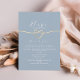 Convite de casamento micro azul poeira simples, moderno e minimalista com coração de corda em folha de ouro elegante. Convite de casamento minimony único perfeito.