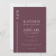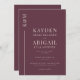 Modelo de convite de casamento simples e elegante, com fundo mauve com fontes brancas e linha.