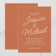 Este moderno convite para o casamento de terracota oferece uma mistura na moda de calor e minimalismo. Apresentando uma elegante escrita branca e uma simples tipografia num fundo terra corajoso, esta design é perfeita para casamentos boho, outono, rústicos ou de temas desérticos. O layout limpo e o texto personalizável o tornam ideal para casais que procuram uma estética moderna e fresca. Combina perfeitamente com a coordenação de RSVP e placas de gabinete para um conjunto completo de convites.