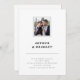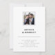 Convite minimalista do casamento em um design simples da tipografia na obscuridade - cinzas e branco. Adicione uma foto do casal feliz e de seus nomes em uma pia batismal corajosa e detalhes em uma pia batismal moderna fina. Um limpo procura seu casamento.