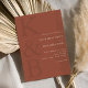 Personalize facilmente seus convites de casamento com esta modelo editável. Apresenta design de tipografia elegante mínima em cor de terracota.