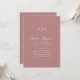 Convite de Casamento Minimalista Monograma Botânico Simples em Rosa Poeira