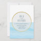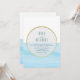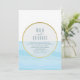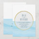 Convite de casamento minimalista, moderno, elegante e simples com dourado e azul aguarela para destino de casamento na praia.