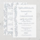 Romântica, simples mas elegante design de vassoura de folhas azuis empoeiradas e de bagas de arte em linha, sobre um fundo branco clássico. Uma beleza delicada sofisticada. Ideal para uma atmosfera de casamento elegante que se encaixa bem com verdes e pinks. elegância clássica na frente com uma mistura leve de fontes de script caprichoso e texto forte e claro. Na parte de trás, a design de folhas e bagas continua onde você pode adicionar seus detalhes de casamento e ter um código QR criado para conectar ao seu site de casamento. Continuação perfeita do tema e sensação da data mágica que vem. Se precisar de ajuda para fazer deste item, por favor, envie-me um e-mail em designsbykatz@gmail.com e eu gostaria de ajudar. Parabéns no seu grande dia.