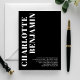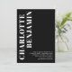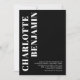 Crie uma declaração ousada com este convite minimalista preto e branco para casamento. O design moderno apresenta uma tipografia limpa em um layout vertical que contrasta lindamente com um fundo preto. Perfeito para casais contemporâneos que buscam um na moda e uma maneira refinada de anunciar seu dia de casamento, esse convite combina elegância com simplicidade. Uma escolha eterno para um casamento com uma vantagem moderna.