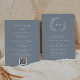 Este mínimo de eventos de fim de semana azul e branco é perfeito para um casamento de boho. A design apresenta uma simples silhueta verde em branco sobre um fundo azul empoeirado com estilo minimalista clássico. Salve o papel, incluindo a programação de fim de semana dos eventos na parte traseira do convite de casamento, em vez de em um cartão de cercado separado. Inclua um código QR para seus convidados para verificar seu site de casamento ou para RSVP facilmente on-line.