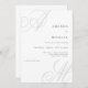 Um design moderno chic com uma borda, este convite de casamento mínimo moderno apresenta belos monogramas de escrita caligráfica da noiva e do noivo em cantos alternativos. Um layout de texto neat exibe os detalhes do seu casamento com um visual clássico limpo com iniciais de cinza pálidas e texto preto sobre um fundo branco. Substitua o texto do exemplo por suas informações. Você pode mover suas iniciais levemente para a esquerda ou para a direita, para cima ou para baixo para acomodar sua melhor exibição neste formato de design. Os monogramas parecem melhores quando correm ligeiramente para fora das bordas. Altere qualquer texto do convite para se adequar ao seu estilo pessoal e preferências.