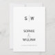 Um convite de casamento ao estilo monograma, elegante e minimalista. Com os detalhes do casamento no verso do cartão.