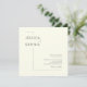 Faça uma declaração de negrito com este convite de casamento moderno, minimalista e esquadrão elegante Este convite de casamento quadrado apresenta um fundo de marfim limpo que permite que a bela tipografia da escrita ocupe o palco central. A estética minimalista cria um aspecto eterno e sofisticado, perfeito para um casamento moderno. Principais recursos: Design moderno: o design elegante e contemporâneo é perfeito para casais que apreciam uma estética minimalista. Script elegante: A tipografia elegante da escrita adiciona um toque de sofisticação e romance ao convite. Ivory and Storm Dust: A clássica combinação de Ivory e Storm Dust cria um aspecto eterno e elegante. Formato quadrado: O formato quadrado exclusivo adiciona um toque de talento moderno ao convite. Personalizável: você pode personalizar facilmente o texto para incluir seus detalhes de casamento, como data, hora e local. Perfeito para: Casais que adoram Casamentos modernos e minimalistas com um tema clássico de marfim e poeira de tempestade Aqueles que buscam um convite sofisticado e elegante com um formato único Envie seus convites hoje e crie uma impressão duradoura sobre seus convidados.