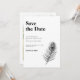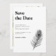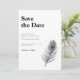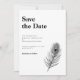 Salve a data de design mínimo O convite apresenta uma ilustração elegante de linha de pena de pavão em um tema clássico de cor branca e preto. Design tipográfico moderno e limpo, este convite para Salvar a Data está pronto para você personalizar com os detalhes do seu dia especial e adicionar sua própria foto. Parte de um número cada vez maior de artigos de papelaria, por favor, navegue na Black Peacock Feather Wedding Suite para obter itens correspondentes.