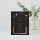 A Astronomia do Casamento da Lua Negra Dourada Mística apresenta o sol dourado, a lua e as estrelas com um quadro de ouro sobre fundo negro. Dentro é a sua informação de convite de casamento. Projetado para você pelo Evco Studio Ver a coleção de coordenação em www.zazzle.com/store/evcostudio