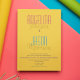 Mínimalista, moderno, moderno, divertido, contemporâneo, convite de casamento amarelo, com simples roteiro caligráfico.
