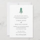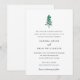Convite de casamento moderno com um design simples com uma árvore de pinheiro pintada à mão em aquarela e os detalhes do seu evento em fontes serifadas e manuscritas.