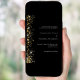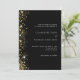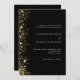 Um convite de casamento moderno. Fundo preto decorado com brilhos dourados falsos. Personalize e adicione seus nomes e detalhes do casamento. Letras brancas coloridas.