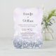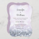 Convite de casamento elegante com letra cursiva roxa lavanda e brilho prateado.